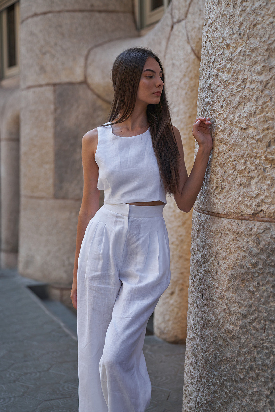 Procedente de la planta del lino, requiere poca agua y ningún químico en su cultivo. Su textura ligera y transpirable lo convierte en un tejido ideal para climas cálidos.